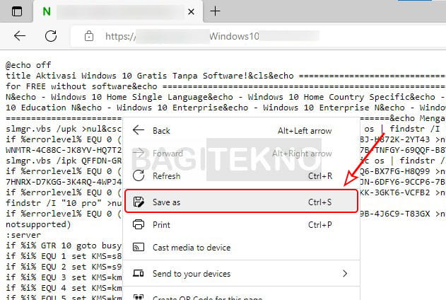 Klik kanan pada halaman yang terbuka yang menampilkan kode, lalu klik Save as.